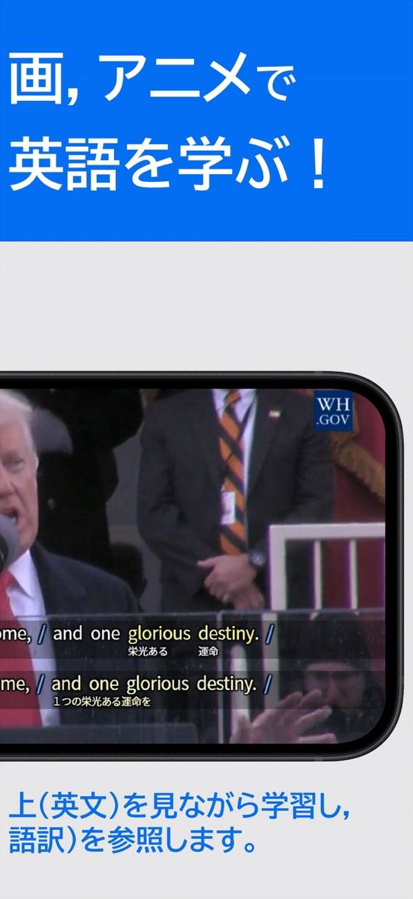 - ニュースなどの動画とテロップで英語の意味や文法が学べる学習アプリ