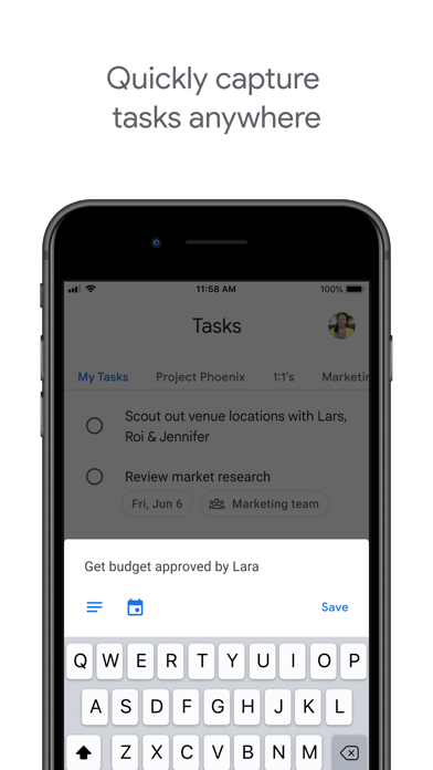 「Google カレンダー」と連携し、使い慣れたアカウントでタスクをいつでも同期。パソコンで編集したタスクをスマホでも閲覧できます。ビジネスシーンでの活躍が期待でき、日々の仕事をスムーズに進行させます。