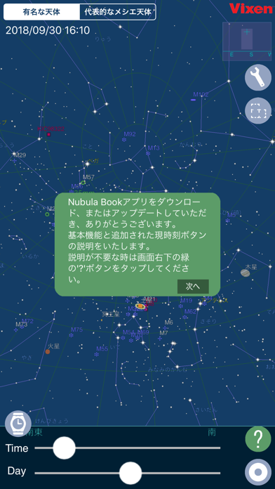 - オリオン大星雲やアンドロメダ銀河など、名前から位置を検索できる