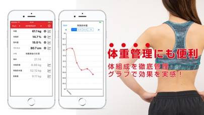 トレーニングによる効果をグラフで視覚化できます。さらに自分の体重や体脂肪率の記録も可能。日々の体の変化をしっかりと確認できるため、筋トレのモチベーション維持に役立ってくれます。