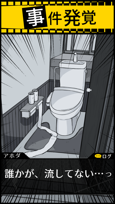 家のトイレに、流されていない暗黒物質が……。犯人に仕立て上げられた主人公は、無実を証明するために操作・推理を行います。あだ名が「ウ〇コマン」になる前に謎を解き明かせるか、主人公の名誉がかかっています。