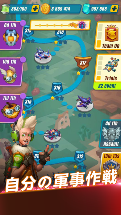 ▲航空機はスワイプすることで移動する。激しい弾幕の応酬が特徴で、息つく暇もない。