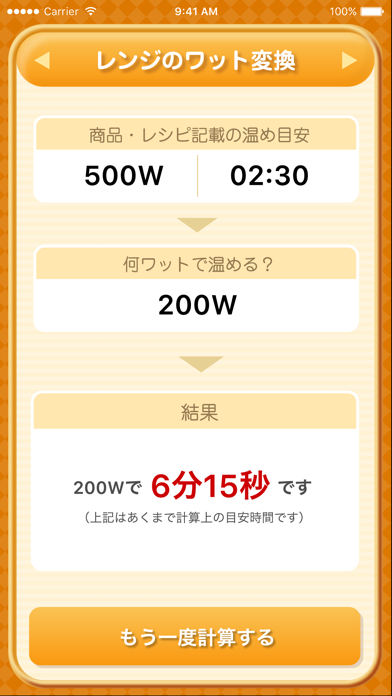 値段とグラム数を入力すると、100グラムあたりの値段を瞬時に計算。本当にお買い得な商品がわかります。少量パックと大容量パックの比較などにも役立ち、効率的に買い物ができます。