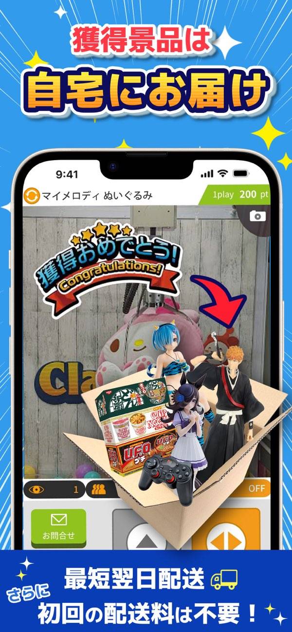 - 取った景品は自宅へお届け。オンラインで遊べるクレーンゲーム