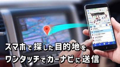 本アプリは対応するカーナビと連携させて使用するサポートアプリです。スマホから行き先を検索し、Bluetoothを使ってカーナビへ目的地を送信できます。