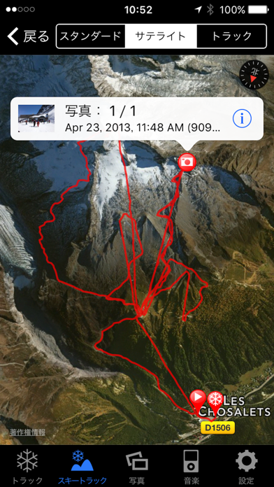 スキーの記録や滑り方の分析に使うアプリ。雪山など寒い場所ではバッテリー消費が早くなりがちですが、省電力設計のため長時間アプリを利用できます。