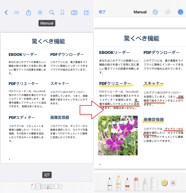 - PDFに画像を組み込む、線を引くなどの編集が行えるエディター