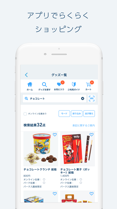 入園当日にはスマホからグッズを注文し、家に配送してもらえます。園内のショップに行かなくても購入できる上、持って帰る手間もありません。なお当日でなくても、商品の閲覧やお気に入り登録は行えます。