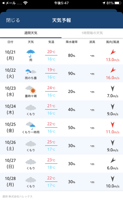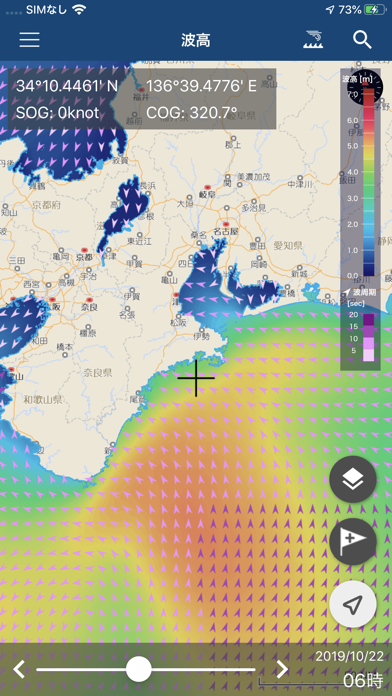 - 海釣り用。潮の満ち引き、風向きなどの予報をしてくれるマップアプリ