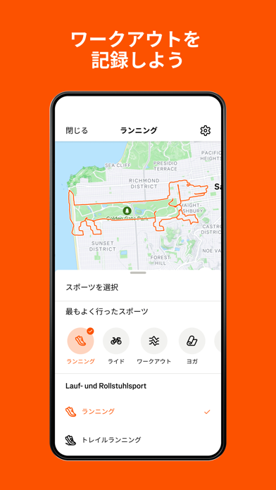| 運動ログの計測データ | 距離、タイム、ペース、ルート |