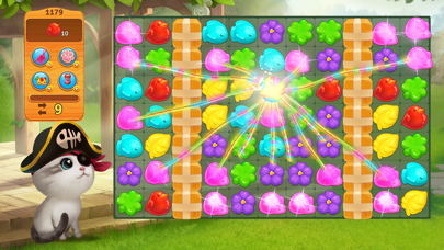▲ピースを3つ繋げて消していく。魚やねずみなど、猫の好きそうな形になっているのがかわいい。