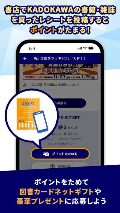 読書好きのあなたにぴったりのスマートアプリです。KADOKAWAが出版する本を買うたびにポイントが貯まり、書店に行くだけでもマイルが貯まります。貯まったポイントは豪華賞品やギフト券と交換することが可能です。