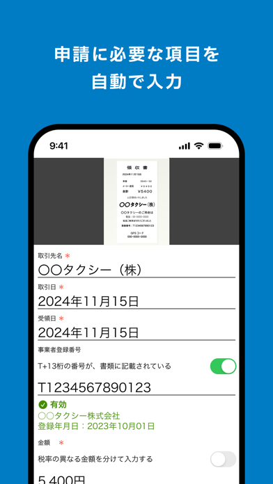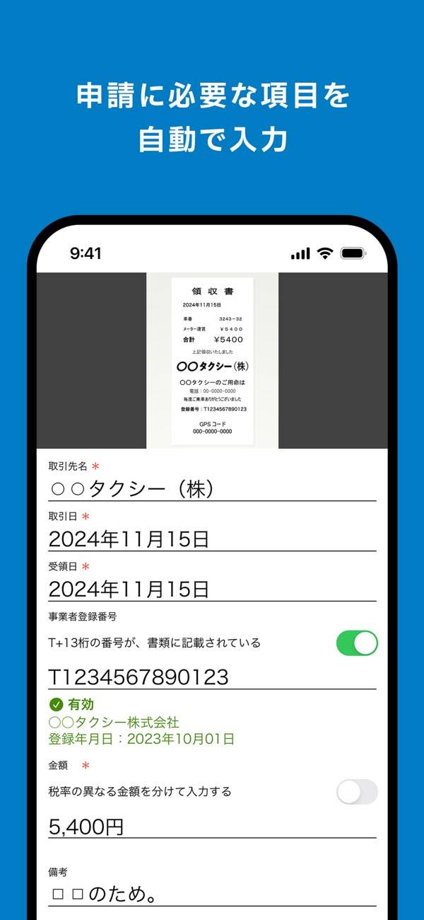 - 領収書などを撮影すると、金額や取引先などを自動でデータ化