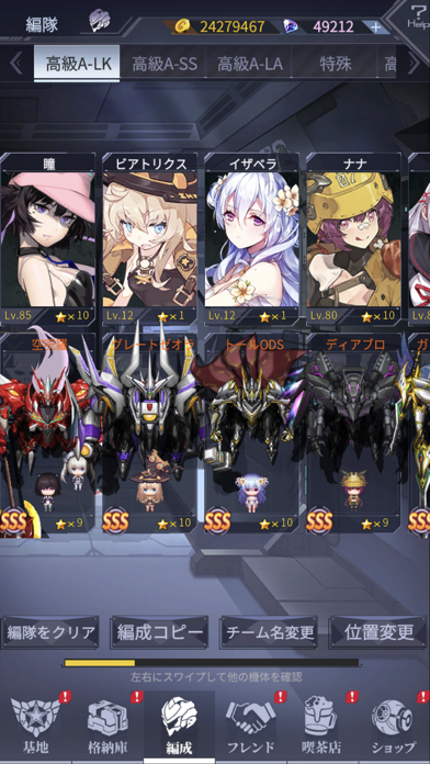 機体のデザインが豊富で、女の子も可愛いんですが、どうしても機体を見ちゃいますね!動きもスムーズで違和感ないのがいいです!ただガチャが激渋なので、ガチャでキャラをゲットを目指すのは程々に…。戦闘はオートなのでほぼ見守るだけの戦略ゲームって感じです。じわじわ楽しくなってきますよ…!