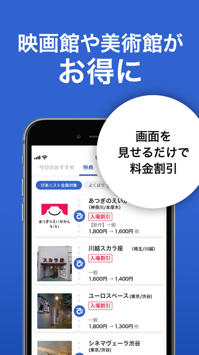 映画館や美術館の割引クーポンも提供していて、気軽に文化施設に足を運ぶきっかけを作ります。