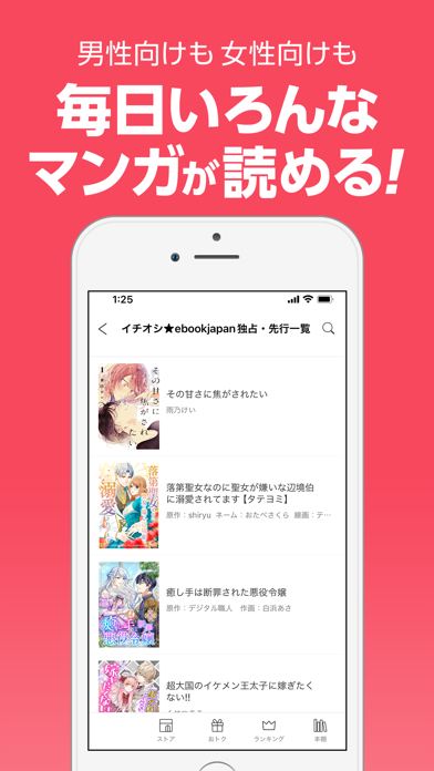 ▲ストアでは最近発売されたマンガが掲載されている。ここでは無料チケットを使用できないので注意しよう。