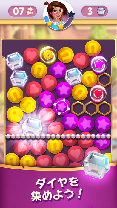 大砲でダイヤモンドを飛ばしたり、人形の中のダイヤを集めたりとステージが豊富。ギミックがかなり多いので、ただパズルを消すだけという単調さに飽きないのも魅力のひとつです。