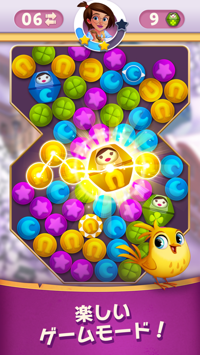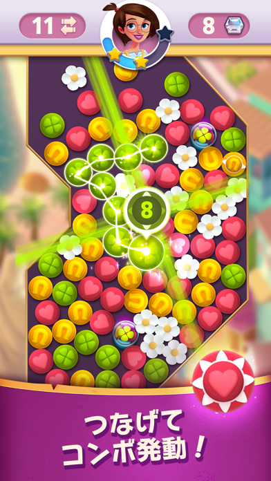 色とりどりのチャーム(ピース)をつなげて消していくパズルゲーム。ステージを進めることでストーリーも展開し、飽きずに楽しめます。画面をなぞったりタップしたりとシンプル操作で遊べるので、パズル好きの方やスキマ時間の暇つぶしにぴったりです。