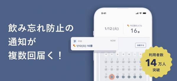 実物のピルとアプリを見比べたり、通知で今日飲むピル番号を把握可能。飲むべきピルを間違えることなく服用できます。