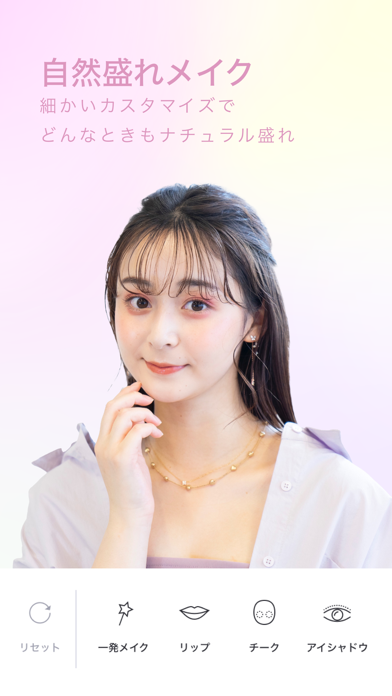 自然に盛れるメイク機能で、リップやチークの色合いを自分の好みに合わせて調整できます。ビューティー補正では、肌のなめらかさや輪郭、小顔なども細かく設定可能。撮影前にプレビューで確認しながら調整できるので、自分の“盛れポイント”を逃さず撮影できます。