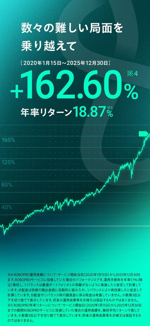 資産運用のプロセスが、AIによって自動化されます。銘柄の選定やメンテナンスなどの難しい作業も、自分で行う必要がありません。そのため、投資初心者でもプロのような運用が可能です。