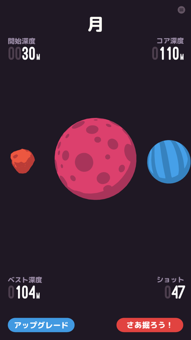 ▲アステロイドという惑星や、月を巡る。一定の深さまで掘り進めると、次のステージが開放。
