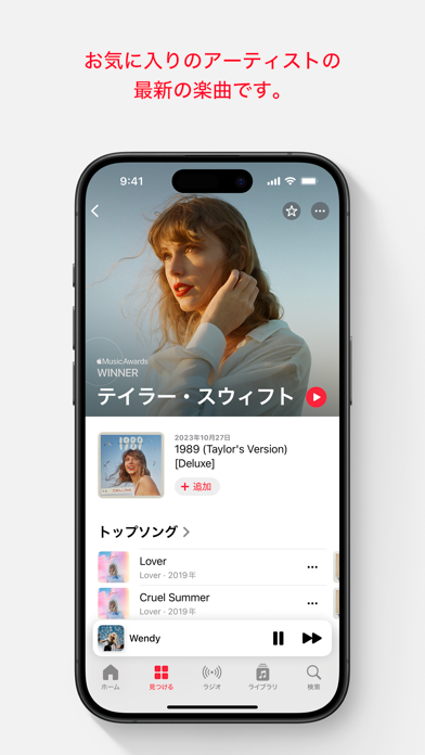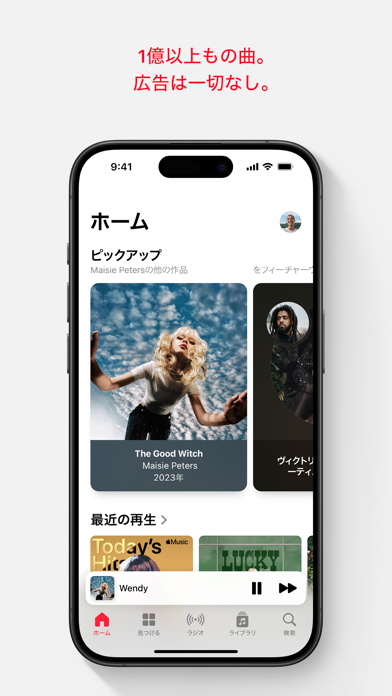 Apple公式の音楽配信アプリです。1億曲以上の豊富な楽曲数に加え、誤字や略称、歌詞の一部からでも正確に目的の曲を見つけ出せる検索機能などが充実しています。さらに、最新のアーティストをしっかりと押さえたレコメンド機能により、常に新しい音楽に出会える魅力も。