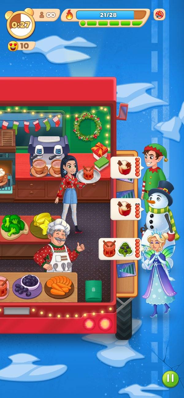 お客さんが注文した料理を素早く作り提供します。限られたお客さんの人数で、指定された以上の売上ならクリア。お客さんを待たせるほどもらえるお金が減るので、なるべく早く料理を出しましょう。ゲームを進めると、スタッフがいっしょに働いてくれます。