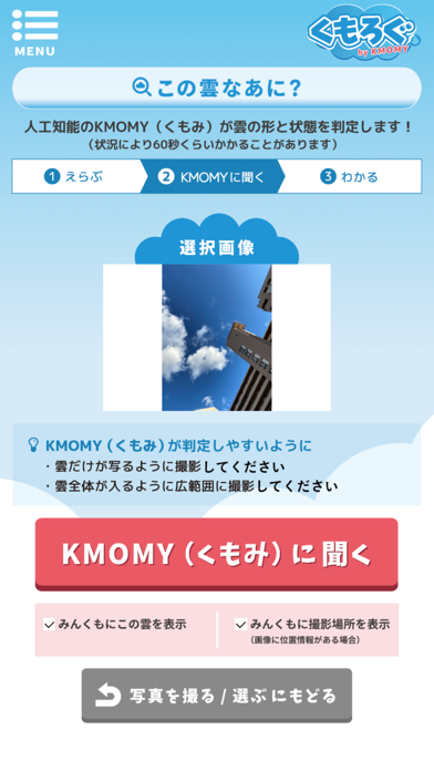 - スマホで撮った写真から、10種類の雲の形を判別してくれるアプリ