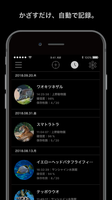 魚や動物など生き物にかざすだけで、約9,000種類の名前や情報をAIが瞬時にサーチします。解説も細かく書かれているので水族館や動物園で使うと面白そう。撮影した生き物のページからどこの施設にいるのか検索も可能です。(国内限定)