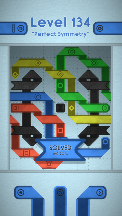 どうやれば方向転換せずに四角を通れるか、試行錯誤の末にクリアした瞬間は気持ちいいですよ。クリア時にできあがるリボンの模様にも注目です。