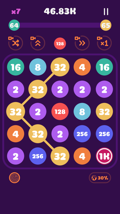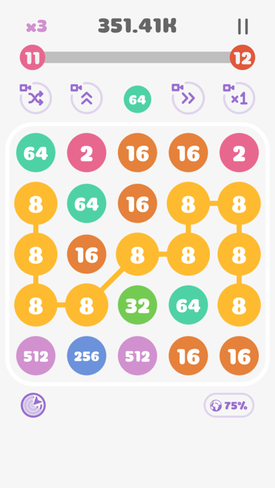 ▲同じ数字を繋いで大きい数字を作り、より大きい数字を繋いでいく脳トレ系のゲームだ。