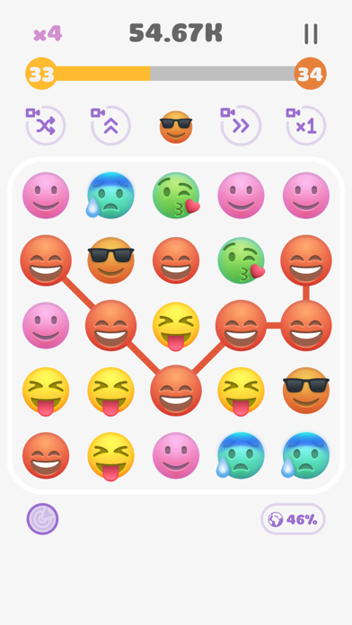 ▲ステージをクリアすると画面上部の数字がどんどん大きくなり、同じ絵文字を繋げるデザインも選択可能に。