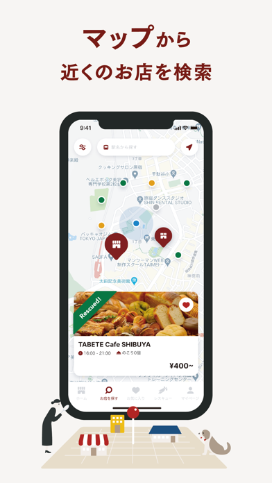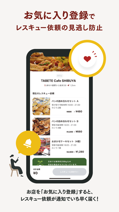 - 近所のお店を「お気に入り」登録すれば、通知で即レスキューできる