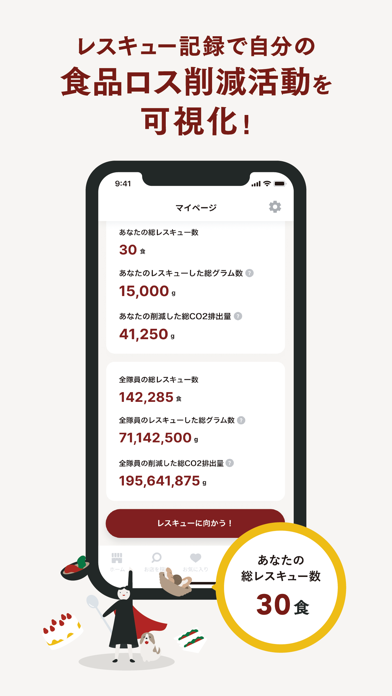 食品ロスの削減につながるフードシェアリングサービス。全国の登録店舗3,000店以上から、売れ残り食品をお得に購入できます。使い方はアプリを操作して、近所の店舗にレスキューにいくだけ。環境にも優しく、手軽な社会貢献ができるのが魅力です。