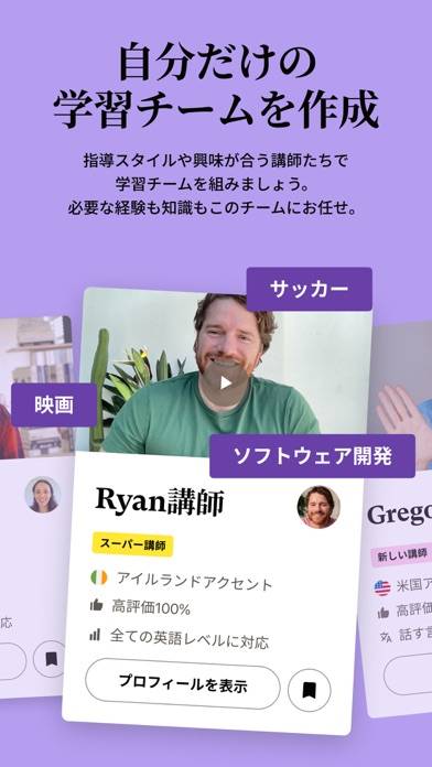 世界中に在籍している講師と、ビデオチャット越しに学習できます。講師たちのプロフィールやスケジュールを見ながら予約。もちろん予約しなくても、思い立ったらワンタップでチャットを始められるツールもあります。