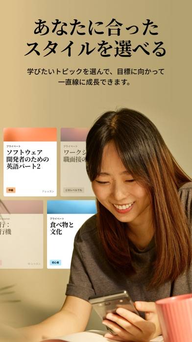 アメリカ、イギリスなどの英語圏のネイティブ講師といつでも思いたった時に英会話レッスンが受けられる優れものアプリ!この値段でネイティブとプライベートレッスンを受けられるなんて、嬉しい限りです。優しい講師もたくさんいて、すぐに緊張も解け、レッスンを受けるのが毎日楽しみです。レッスンも録画されるから、自分の発音を聞くのは恥ずかしいけど、とても役に立っています。