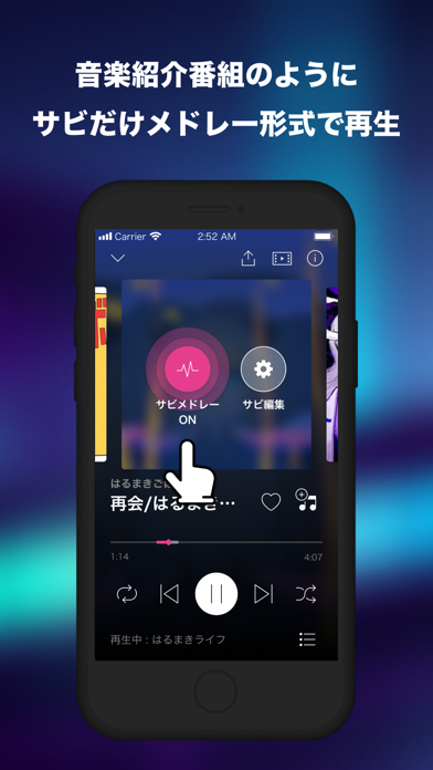 - サビ部分のみを再生可能。手短に楽曲を把握したい場合に役立つ