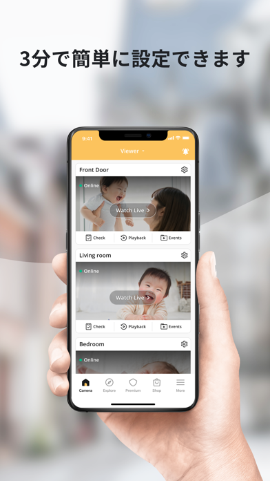 加えてビューアー側のデバイスから、カメラ側のデバイスの警告音を最大音量で再生可能です。本当に万が一の事態で、家に不法侵入者が現れたときも警告音で即座に対処可能。