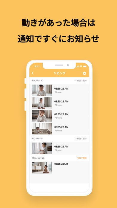 空き巣など万が一の事態にも遠隔で対策を取れる仕組みで、防犯機能も備わっています。カメラの映っている範囲内で、何か大きな動きがあると、ビューアー側のデバイスに通知が届く仕組み。例えば家を空けて外出する際、不審な動きがあった時にすぐ把握できるようになります。