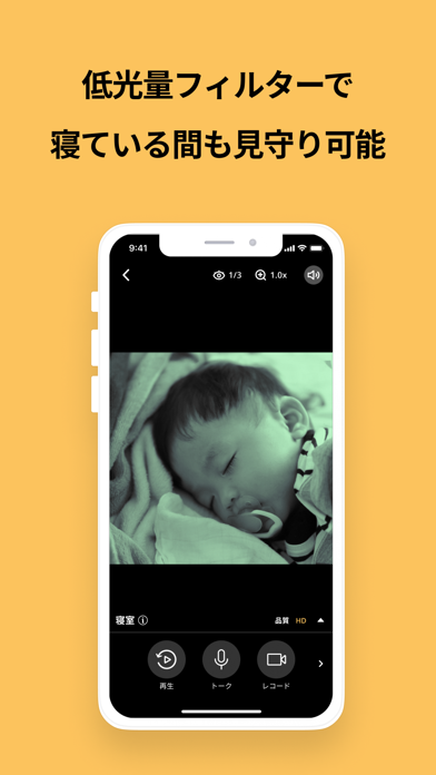 低光量フィルターではライトは点灯しないため、特に眠っている乳児や幼児の様子を見守るときに便利。子供をびっくりさせることなく、遠隔で様子を確認できます。