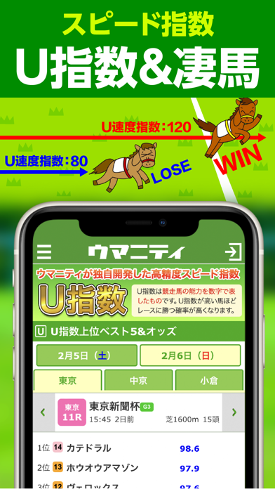 - U指数とデータ分析機能搭載。馬の能力を科学的に判断