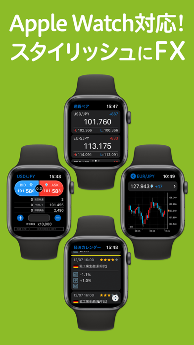 Apple Watchがあれば、余力やレート、チャートの確認はもちろん、通知からそのまま注文まで行えます。狙っていた相場の動きがあったときも、スマホを取り出さずにスムーズに対応できるのがポイント。いつでも取引タイミングを逃さず反応できる仕組みになっています。