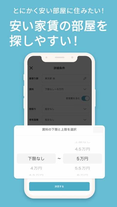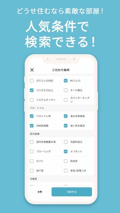 不動産屋に行く必要がなく、契約まで自宅からできるアプリです。どうしてもすぐに引っ越ししなければいけなくなったときに便利でした。仕事の休憩時間にさっと内見予約ができ、土日に内見。後日、テレビ電話で契約までできたため、仕事を休まず引っ越し先を決められました。