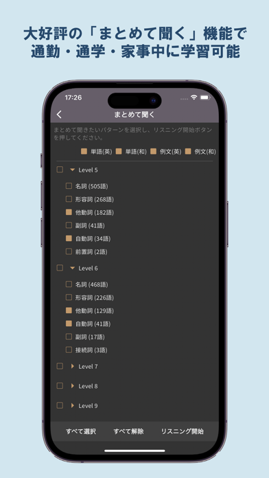 - 単語レベルは10段階。自分に適した段階を選んで、効果的な学習が可能