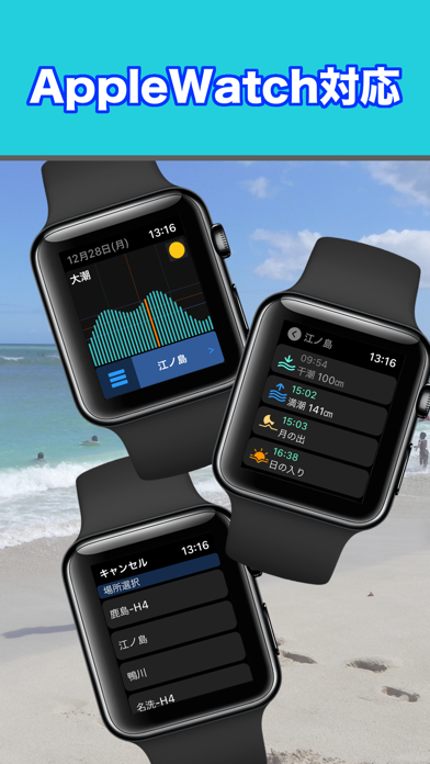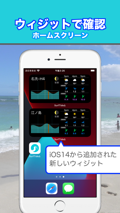 波乗りや釣りに必要な海の情報を簡単に確認できるツール。日本国内約340カ所のタイドグラフを表示し、潮の動きをフリッカー表示でひと目で把握できます。また、「風の向き・風速」「うねりの方角・波の高さ・波の周期」などの気象予報情報も視覚的に確認可能です。