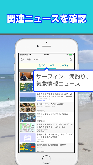 サーフィンや海釣りに関する最新のニュースフィードを毎日更新。新しいニュースの配信はアイコンマークで通知されるため、重要な情報を見逃すことはありません。常に最新のマリンスポーツ関連情報を把握できます。