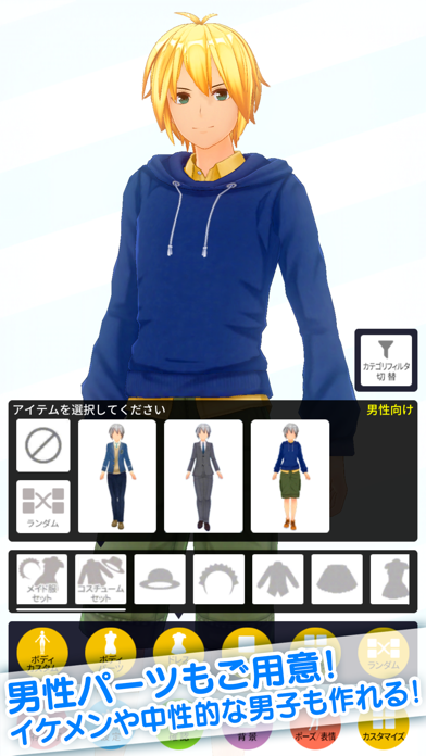 - 男性のプリセットキャラクターが用意されていない