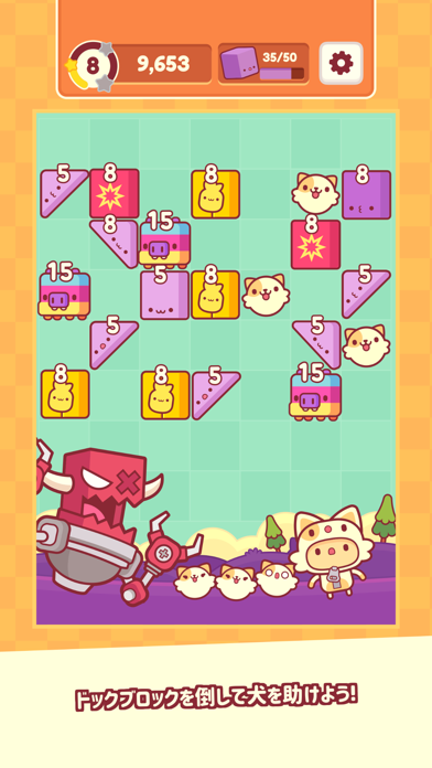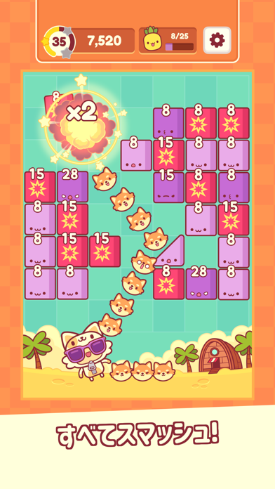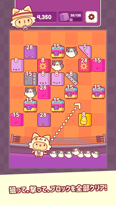 ブロックに可愛い猫さんをぶつけて全て消すアプリ。