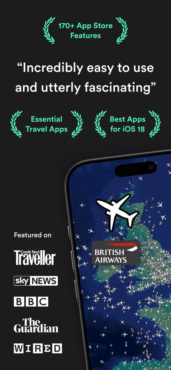 飛行中の航空機を地図上でリアルタイムに追跡可能。指定した機体の位置・速度・高度情報はもちろん、その航路もひと目で把握できます。旅行者はもちろんのこと、飛行機好きの人や業界関係者にとってもおすすめのアプリです。